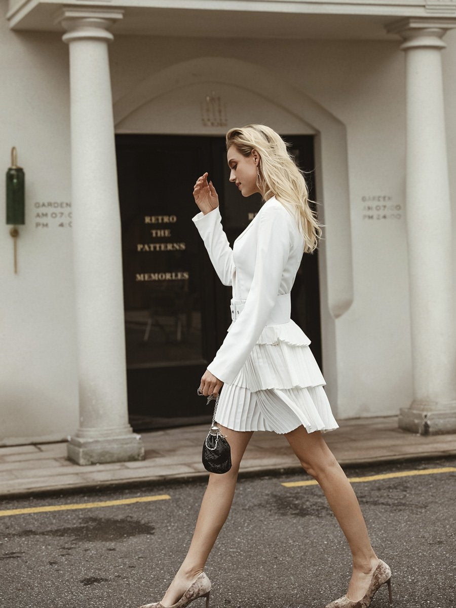 Ellie I'm So Beautiful Chiffon Blazer Pleated Dress - White