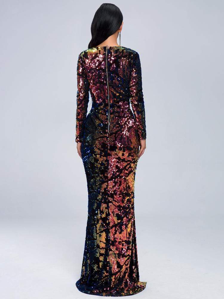 Beautiful gradient sequins are outstanding,and the partially ingeniously designed, this long-sleeve cocktail dress features a sexy deep v-neck, a unique waist cut on both sides, and a split design from the middle.For a pageant or prom 2019,you only need a colorful dress by MISS ORD.