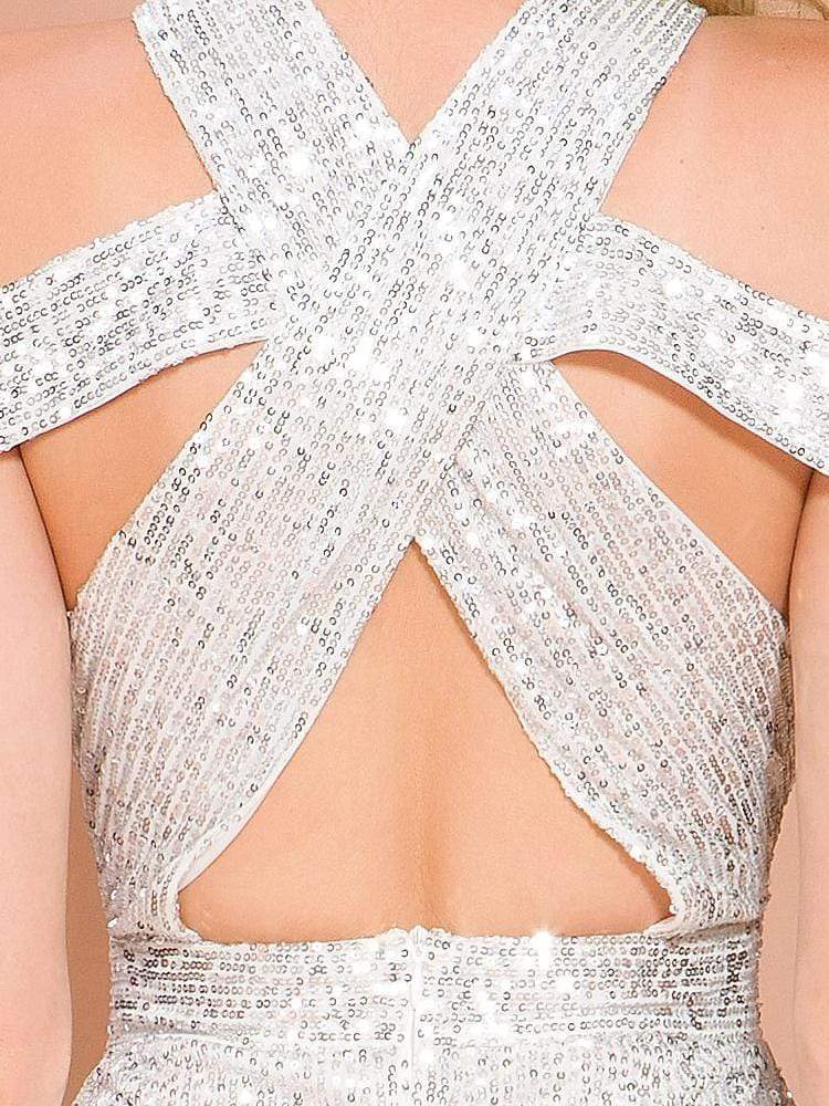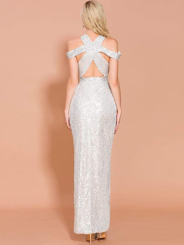 Cutout Sequin Party Dress With Split