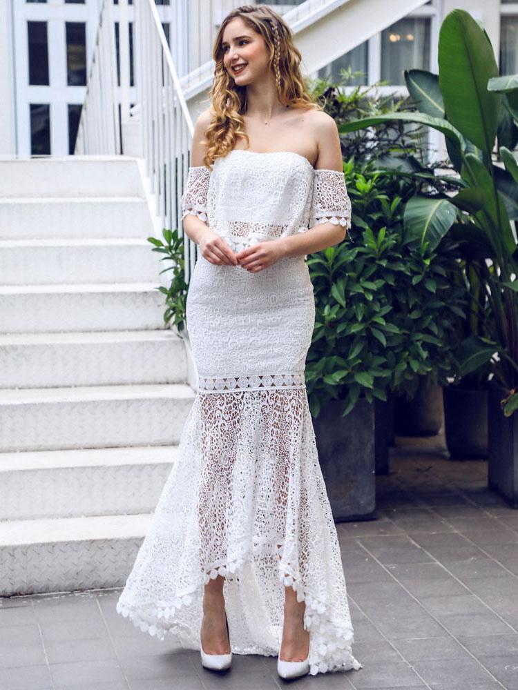 Elegant Off The Shoulder White Lace Fishtail Wedding Dress