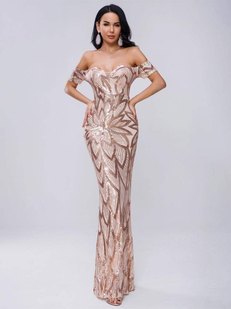 Elegant Prom Rose Gold Sequin Dress