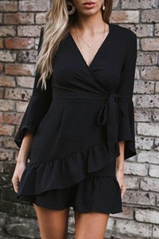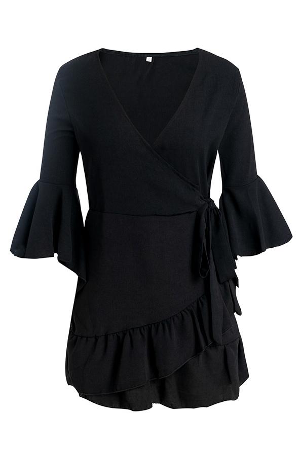 Ruffle Long Flare Sleeve Cardigan - Black/Cyan