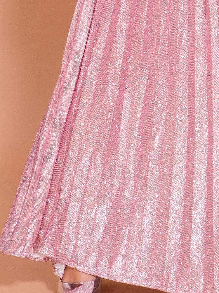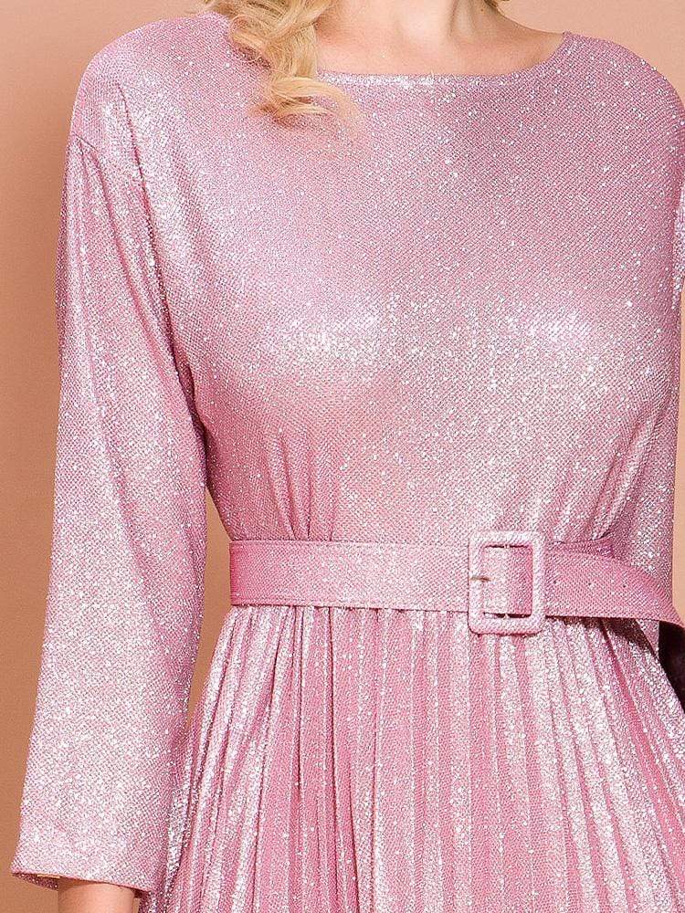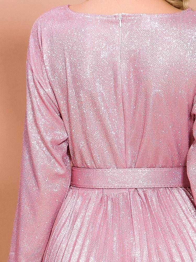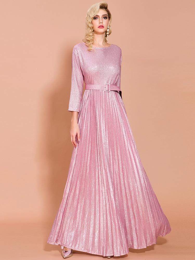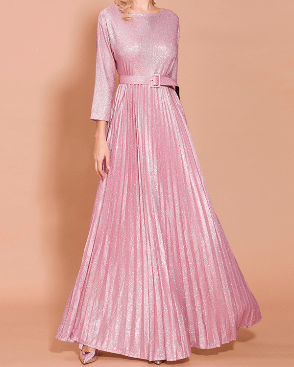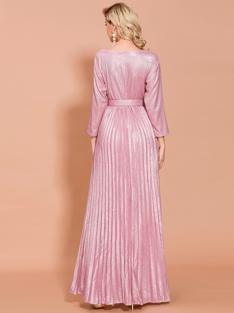 Glitter Pink Seven-Quarter Sleeve Pleated Dress