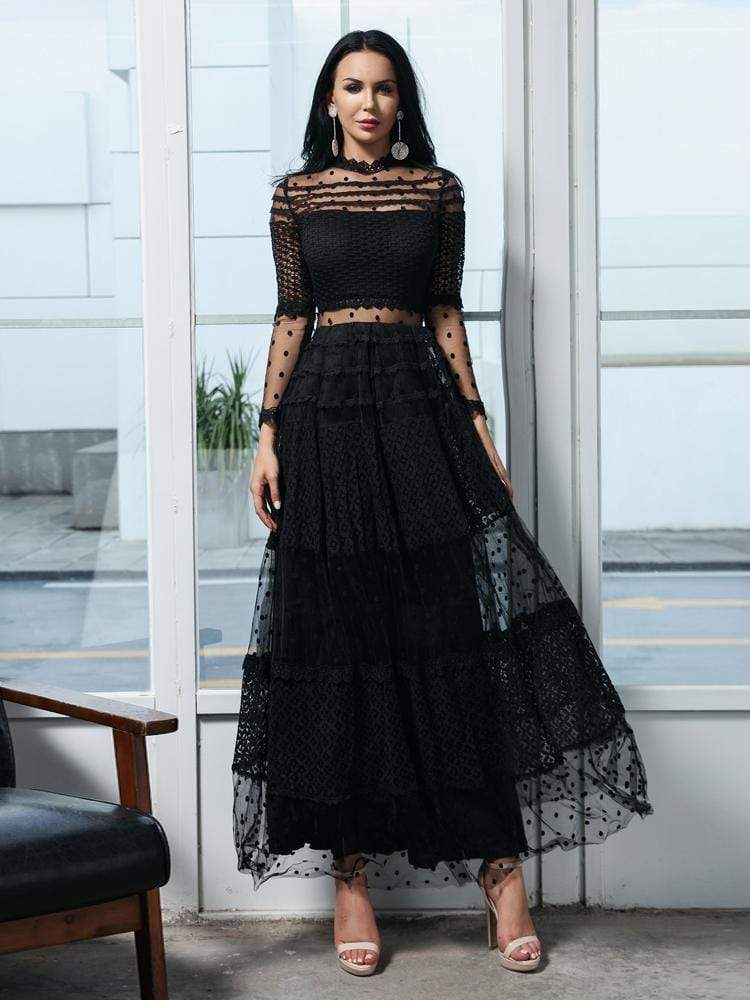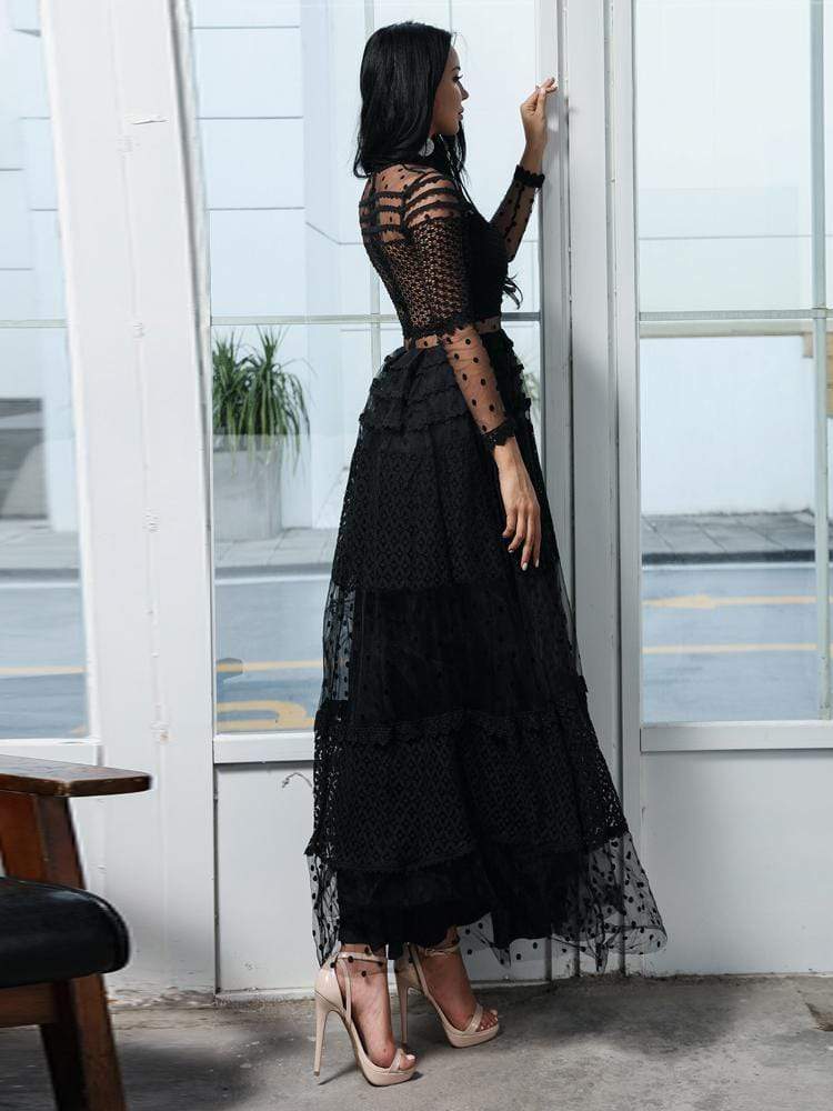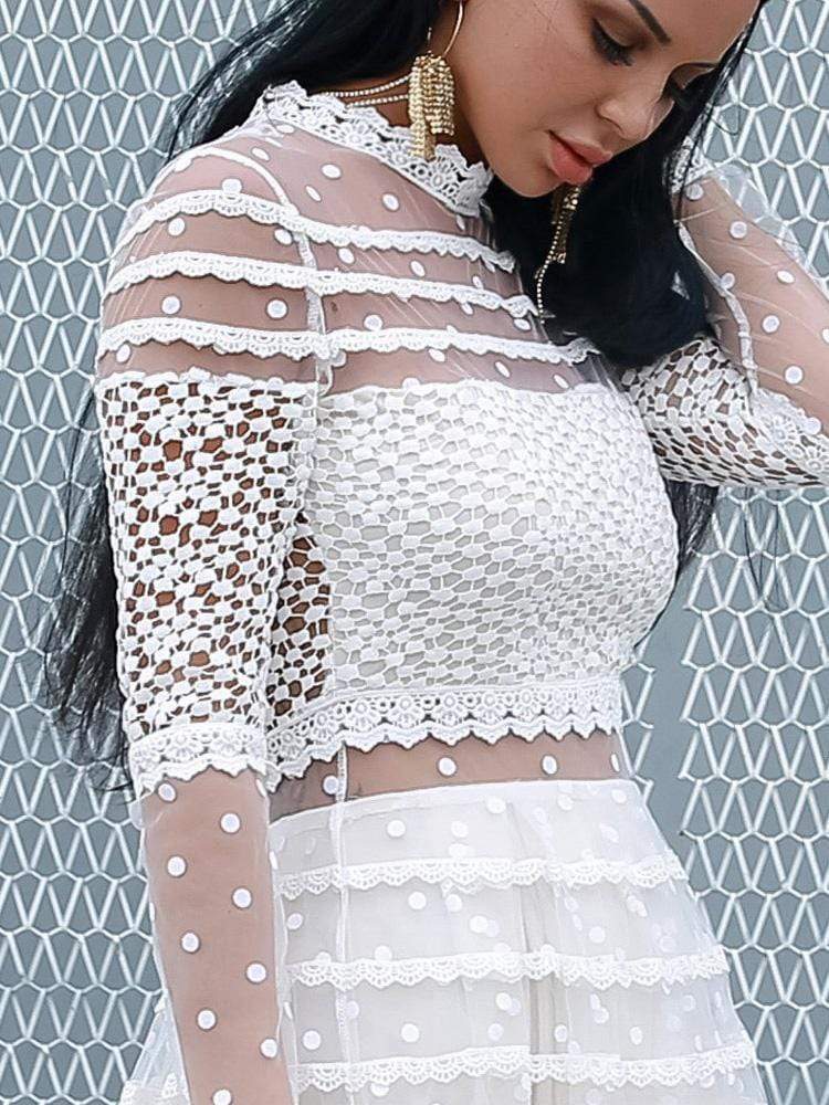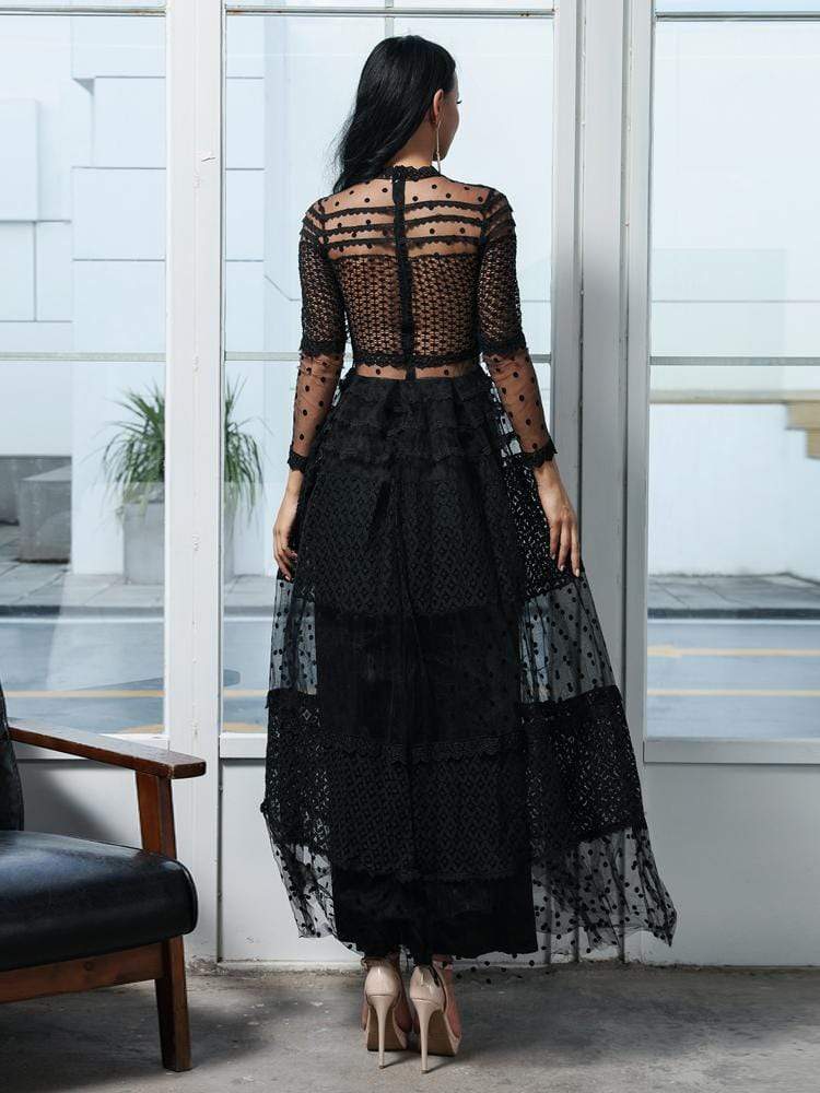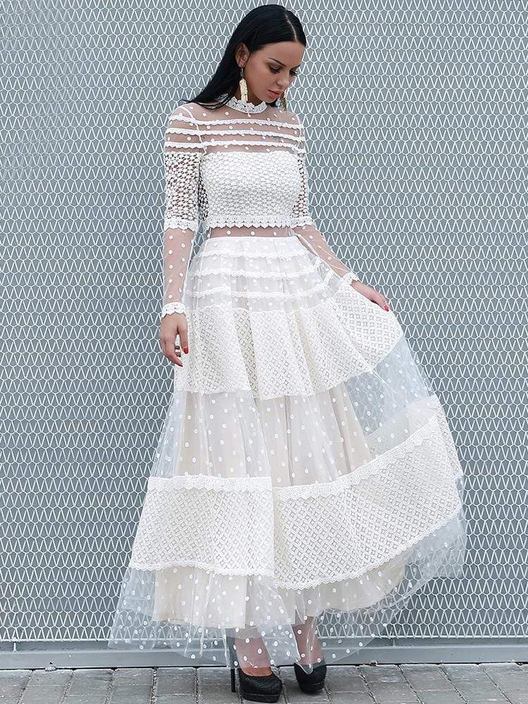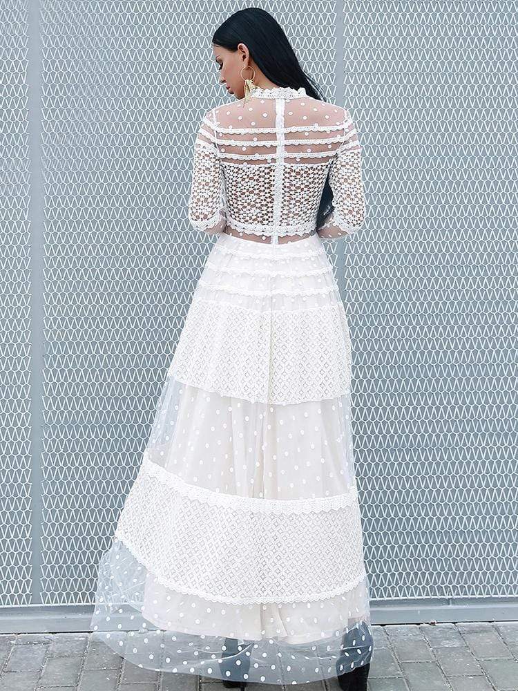 High Neck Dot Casual Elegant Lace Dress