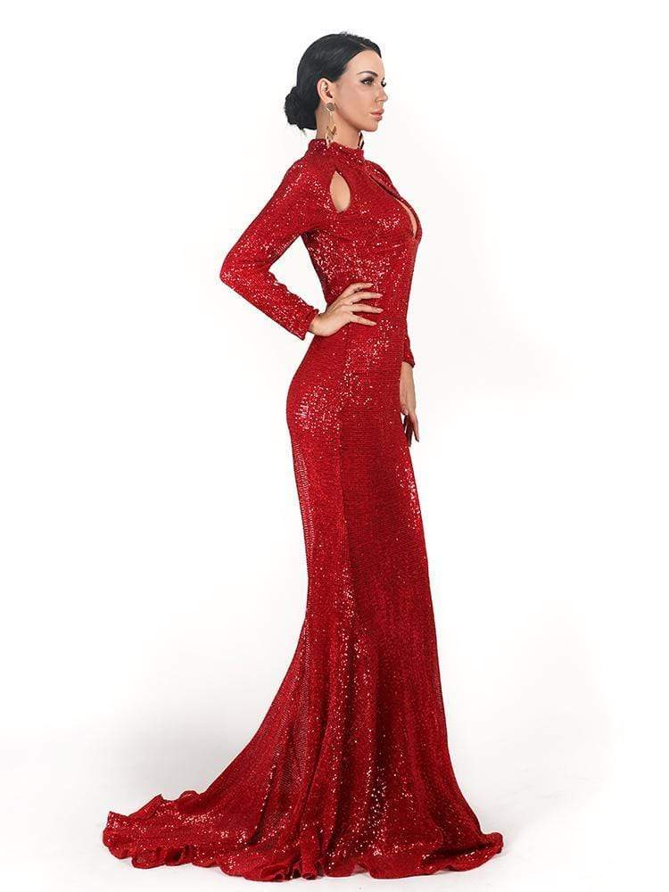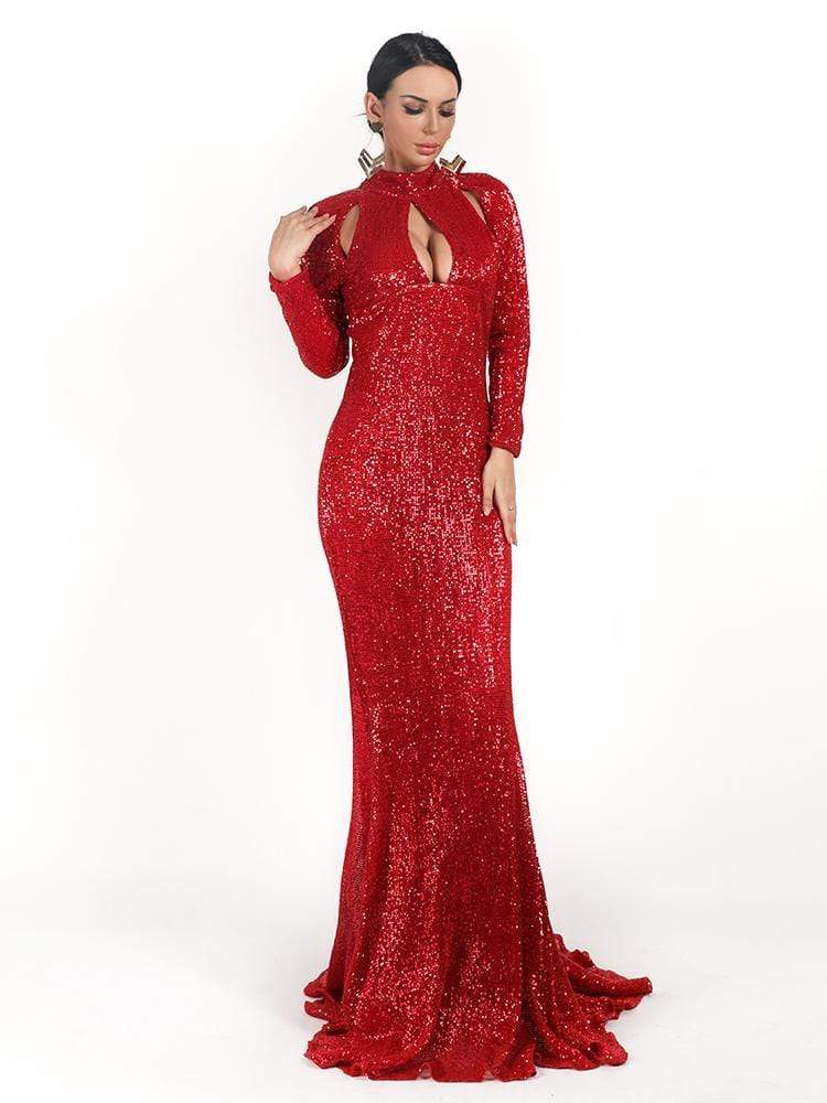 Keyhole Sequin Mermaid Vintage Prom Dress