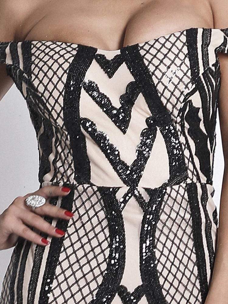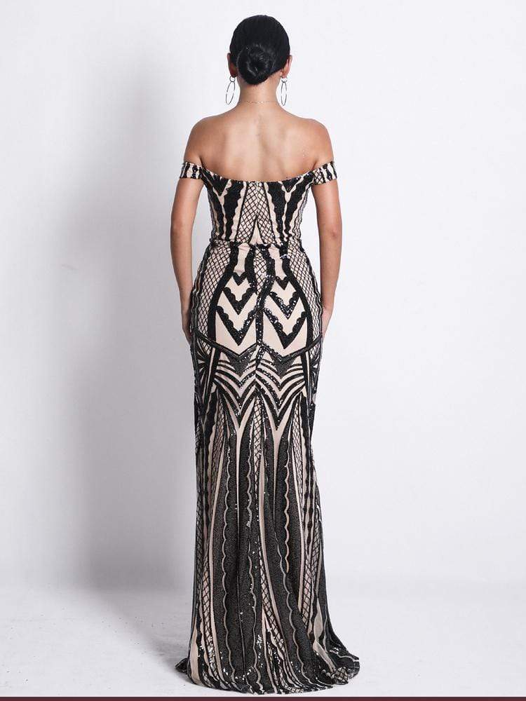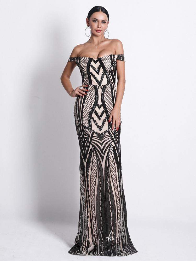 Off Shoulder Sequin Geometric Prom Dress