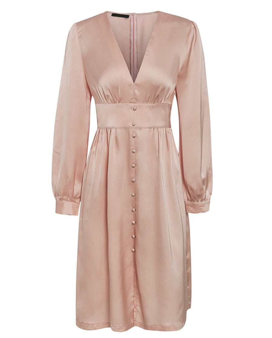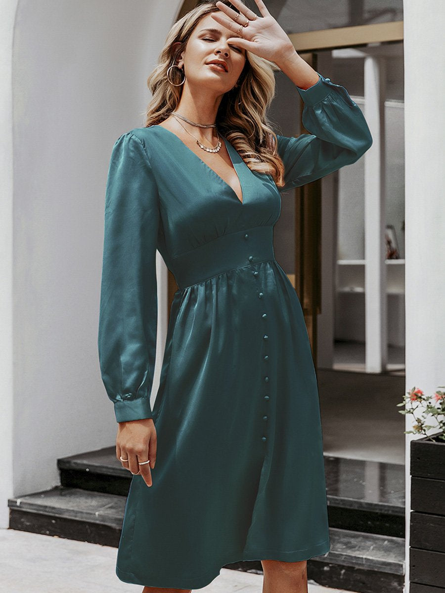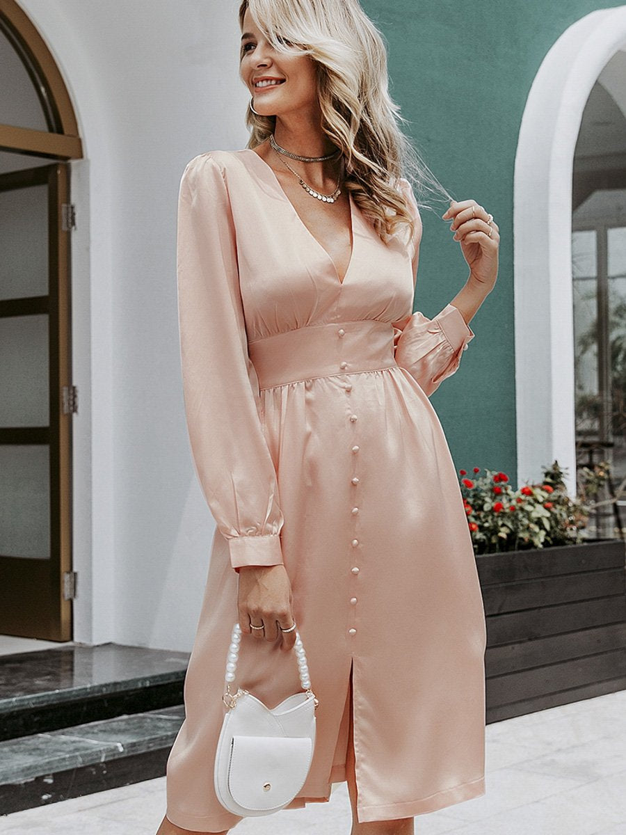 Kiss Me V Neck Satin Midi Dress - Pink/Turquoise