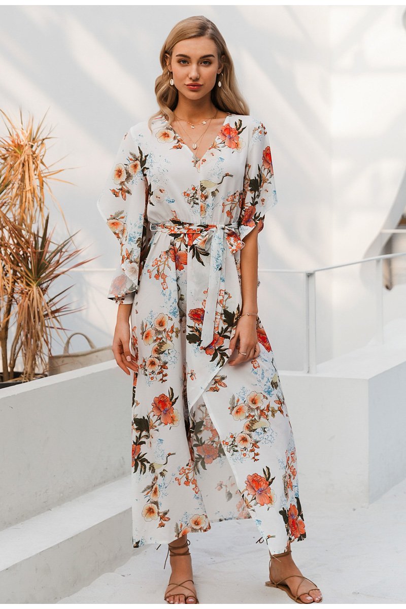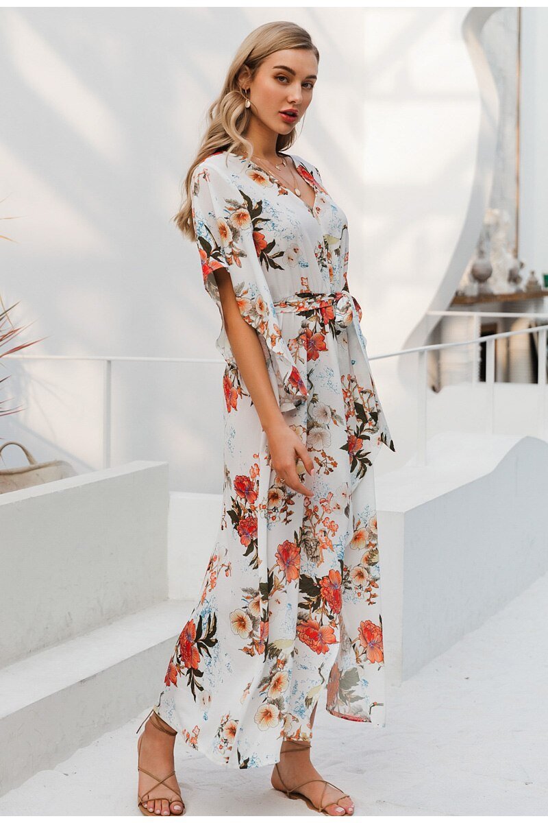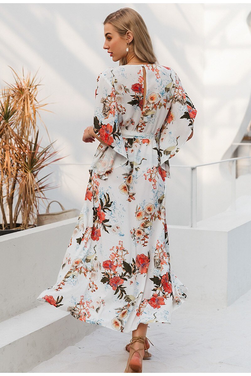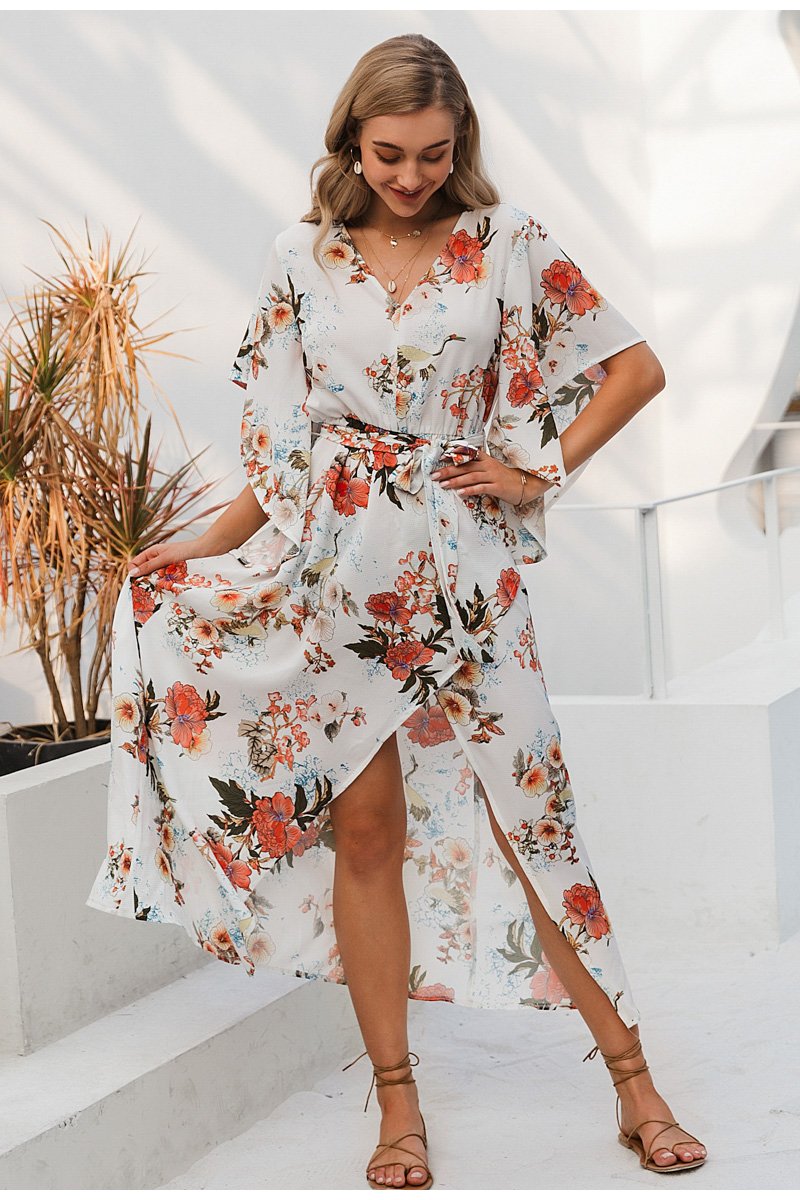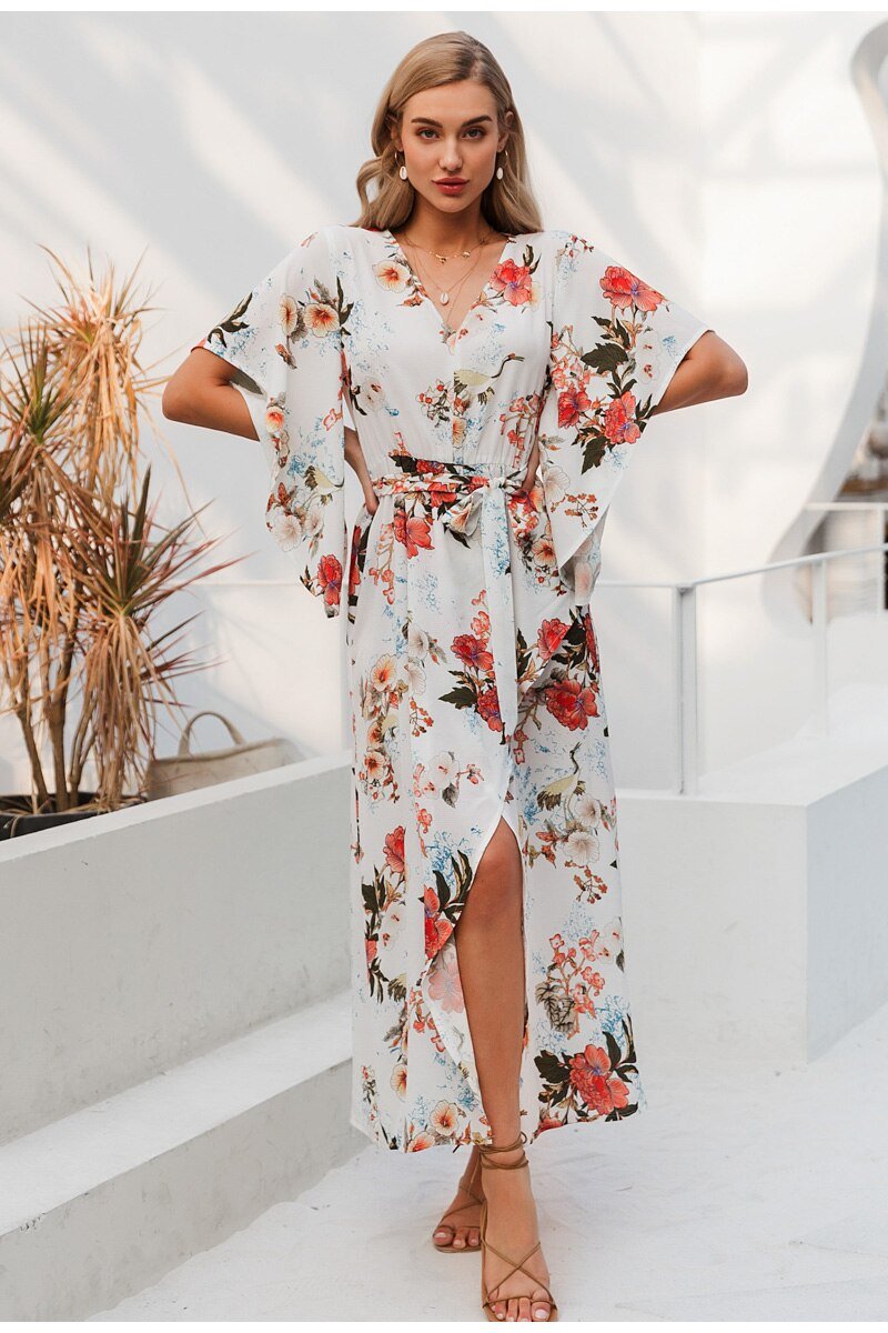 Style: Beach Style Waistline: empire Pattern Type: Floral Dresses Length: Ankle-Length Item: v neck floral women maxi dress Color: white print dress Occasion: beach summer holiday dress Year & Season: 2020 Summer Spring Feature: high split, v neck, maxi length Style: sexy dress,elegant dress |