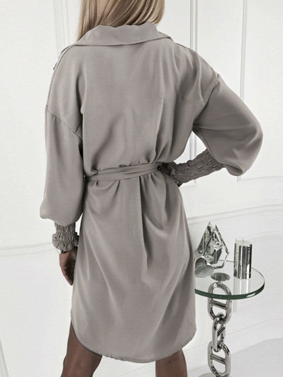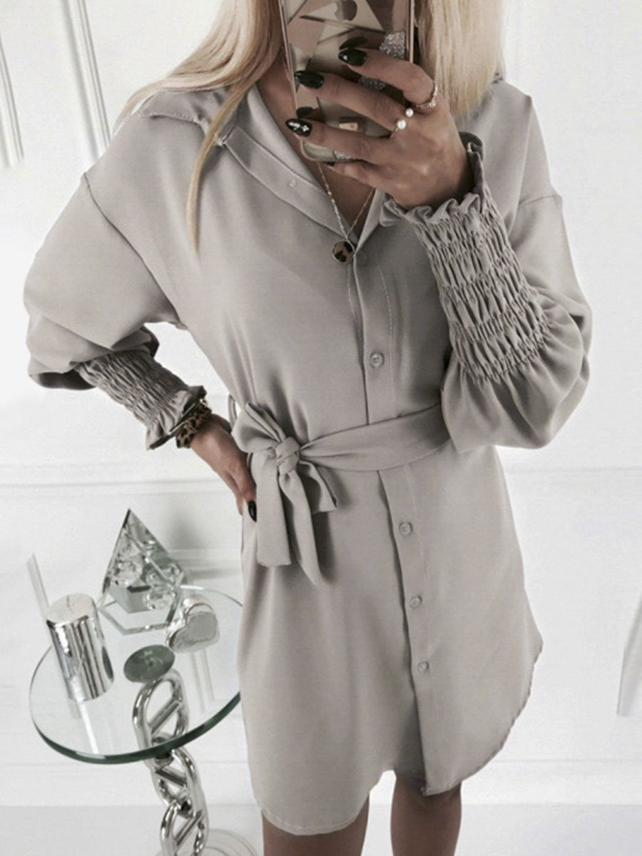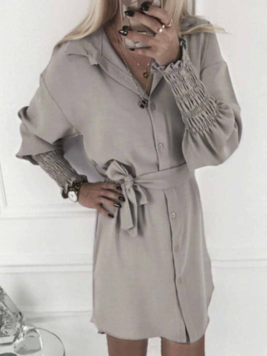 Lantern Sleeve Sashes Mini Dress - Brown