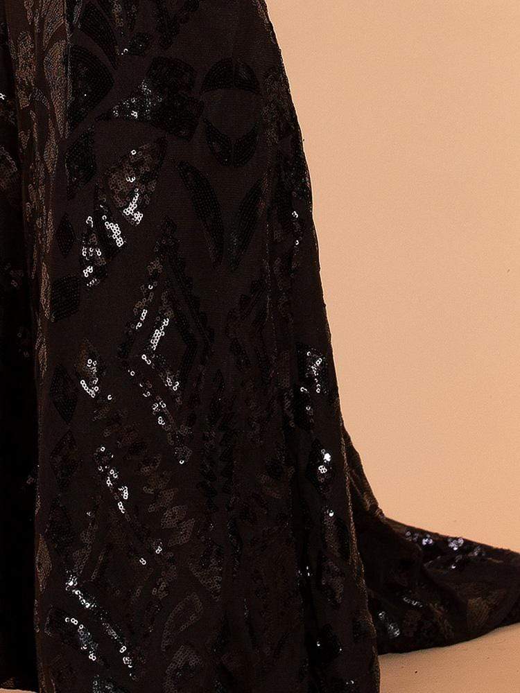 Closure: Sheer V-Neck Inset / Back Zipper / Cut Out Back
