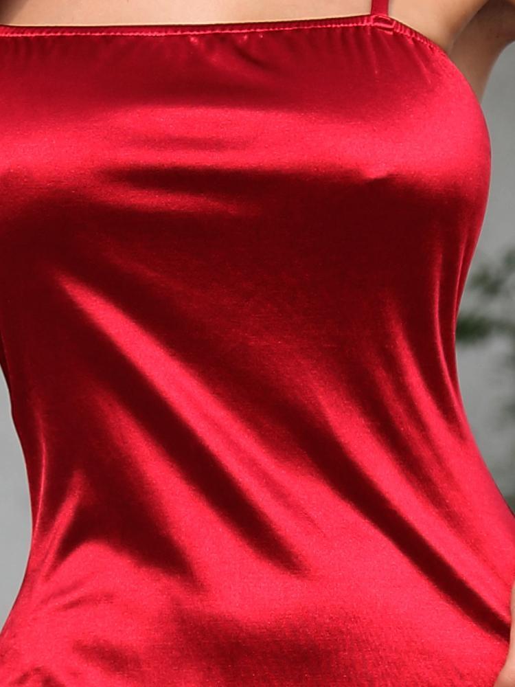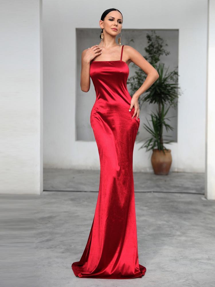 Square Neck Red Long Satin Prom Dress