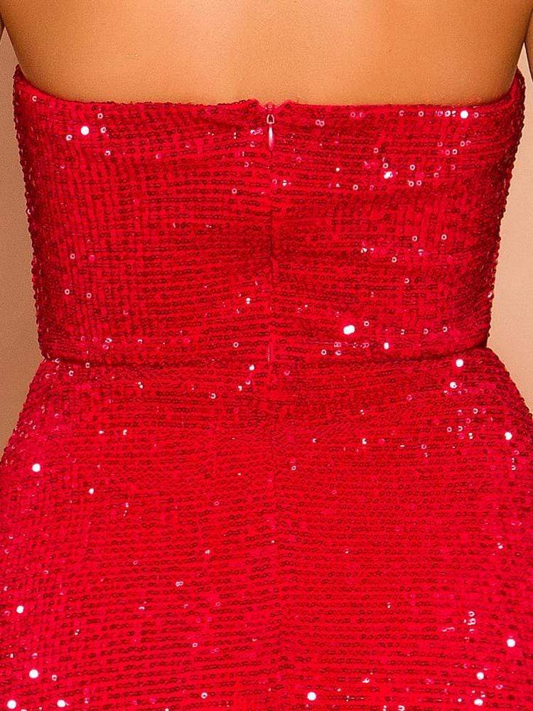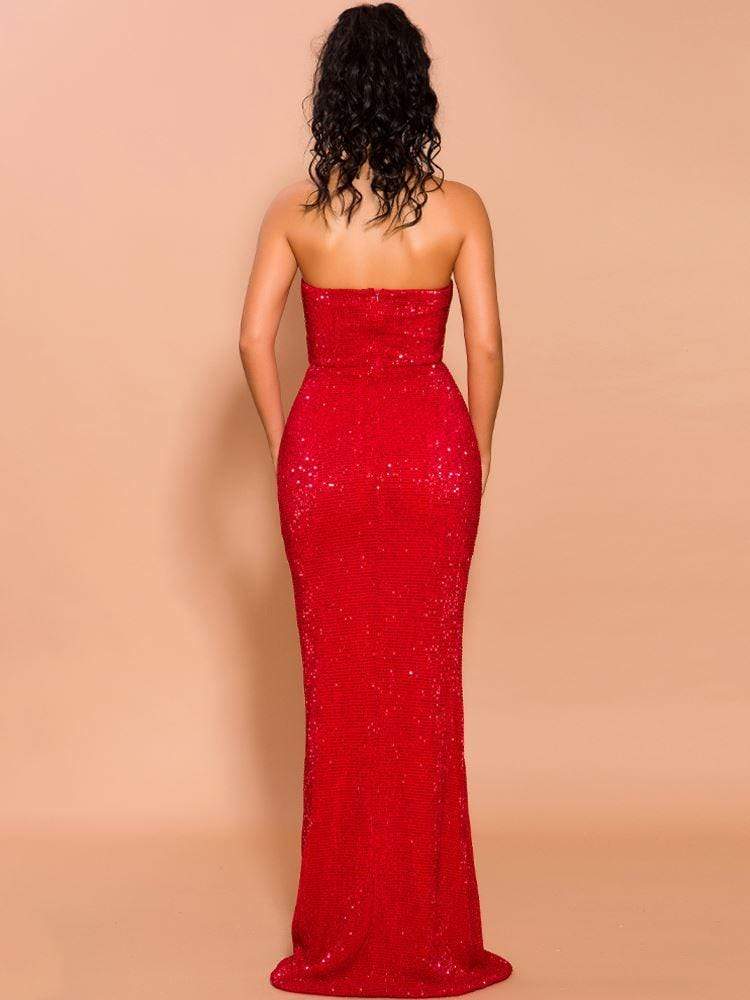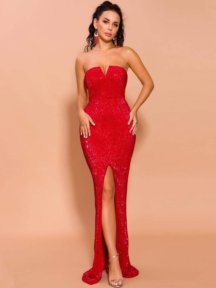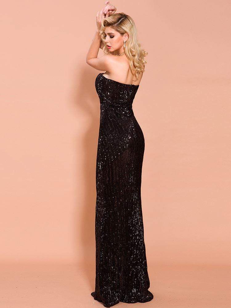 Strapless Sequin Black Prom Dress Middle Split