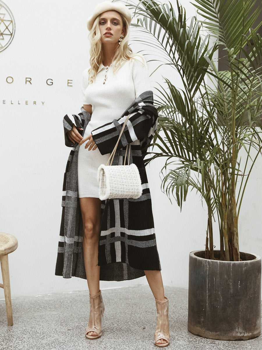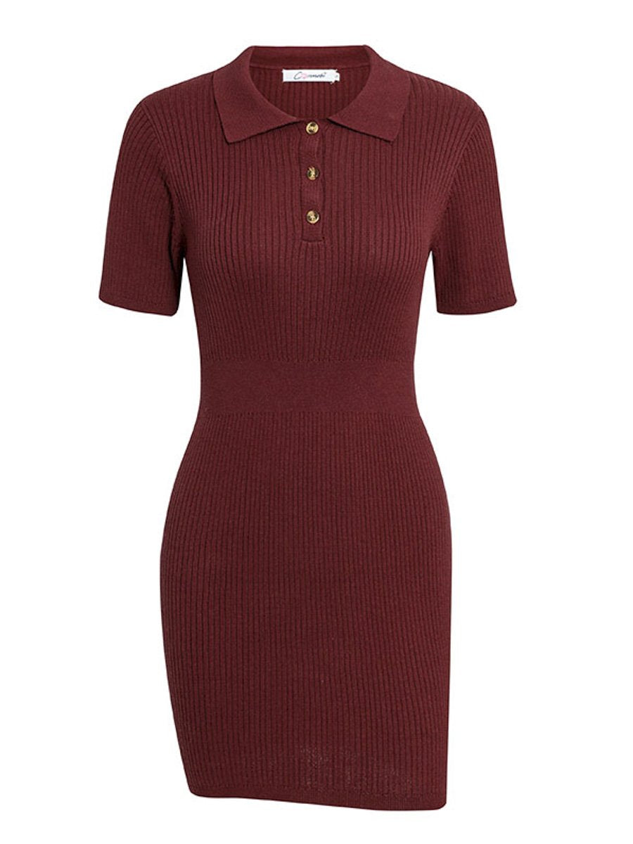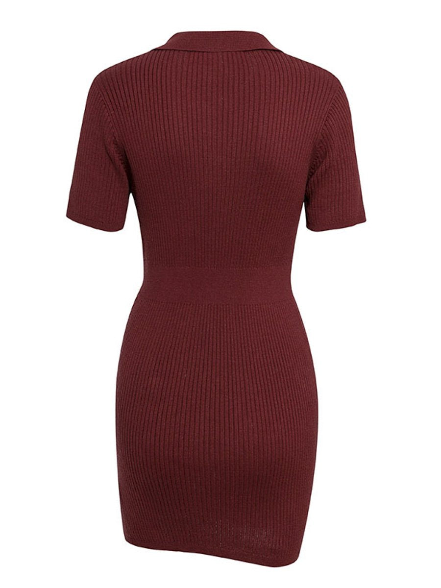 Win Your Heart Slim Polo Collar Sweater - White/Burgundy