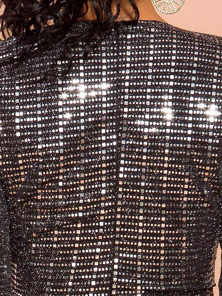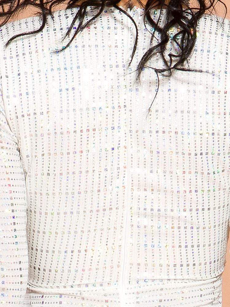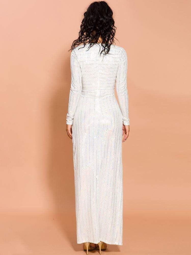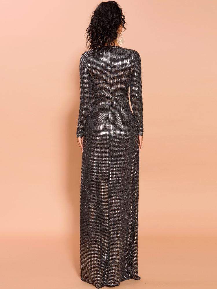 V-Neck Long Sleeve Diamond Maxi Prom Dress