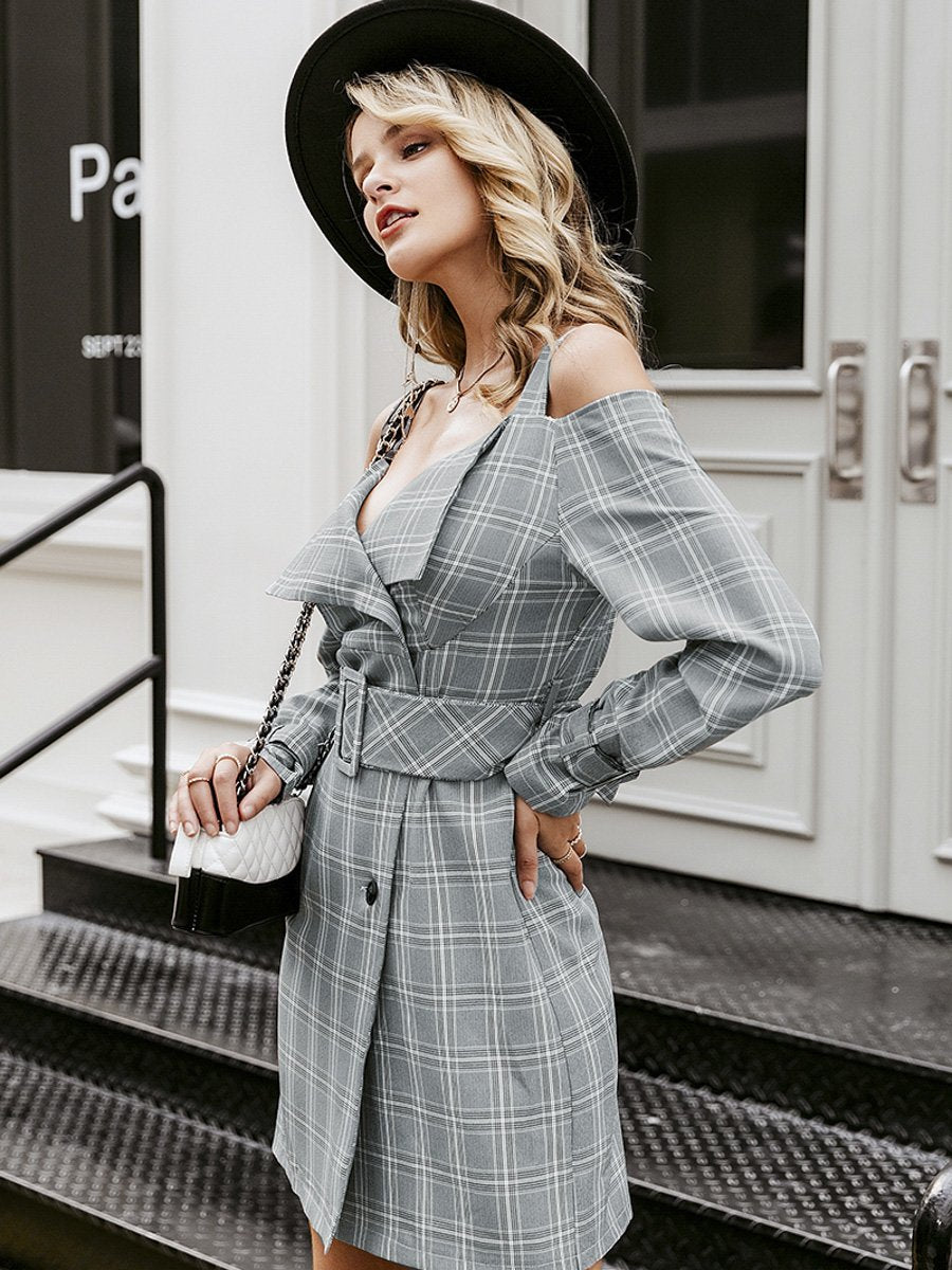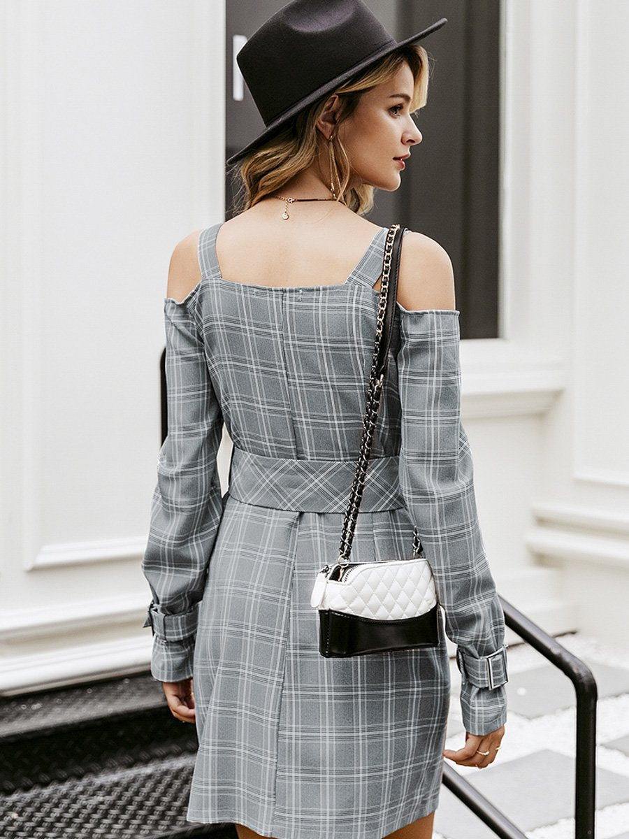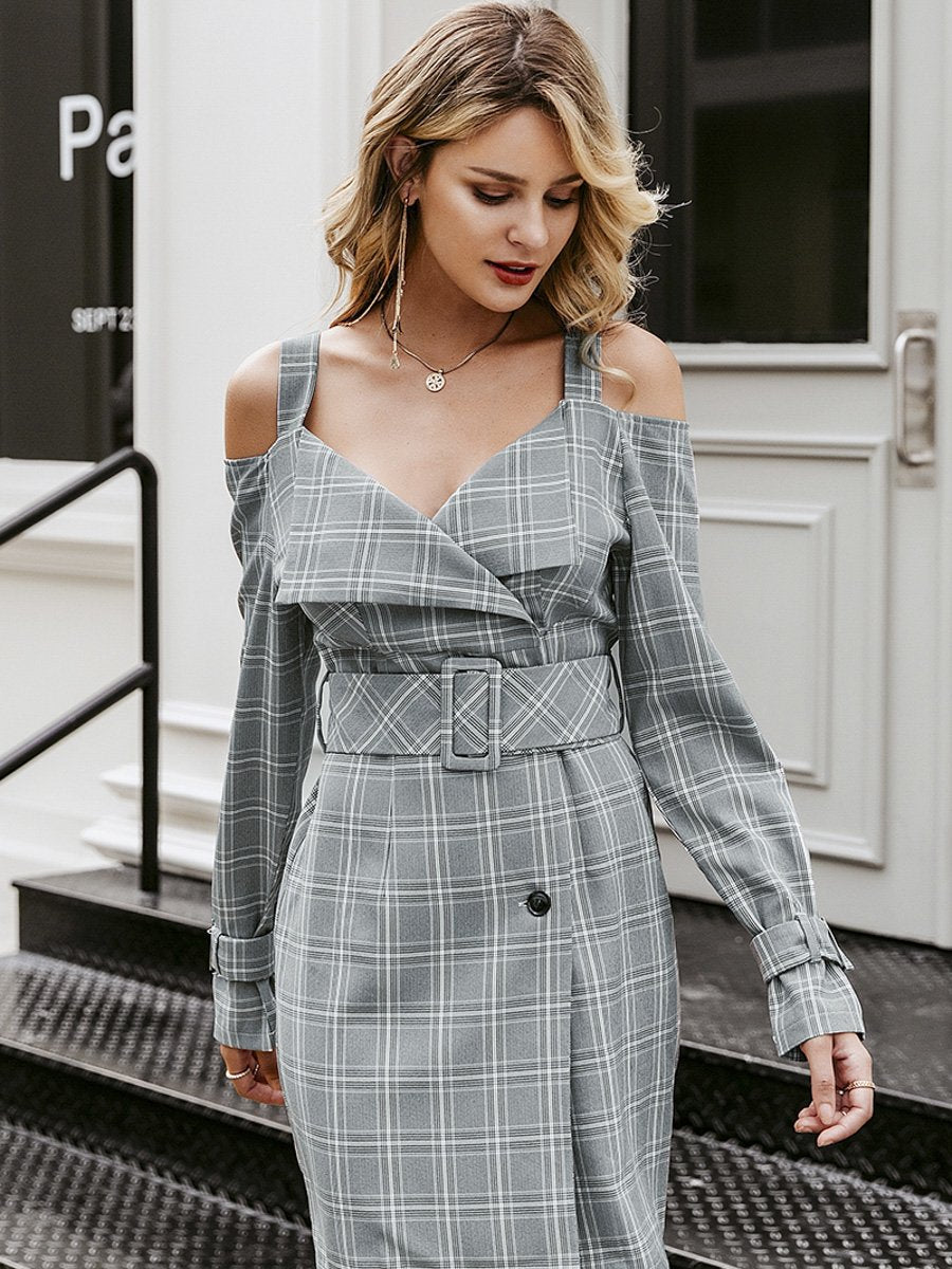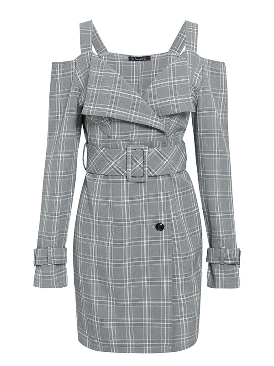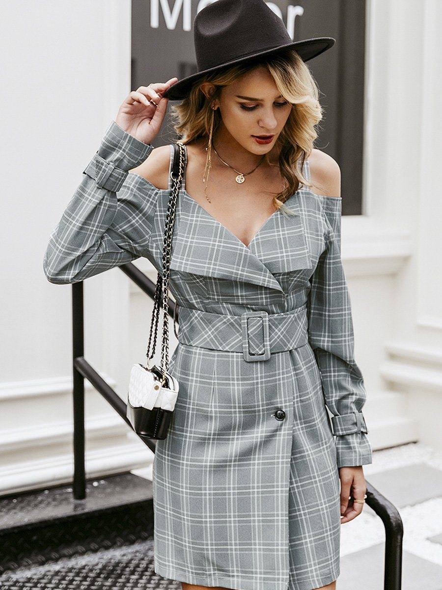 Shhh V-neck Plaid Sash Belt Dress - Multicolored