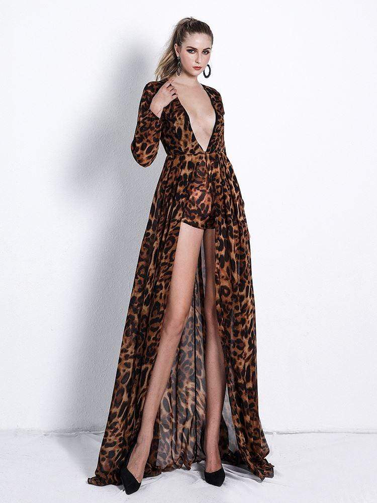 Chiffon Leopard Party Long Jumpsuit
