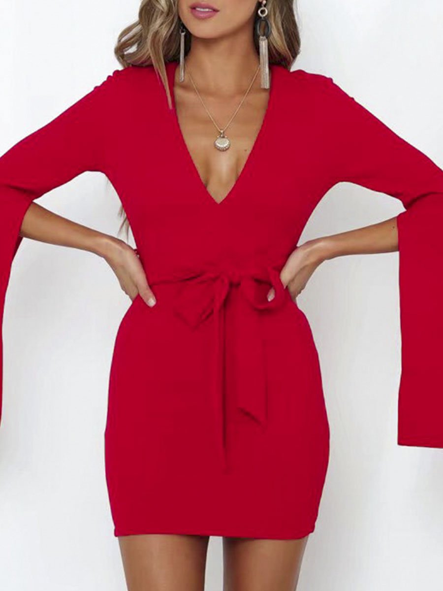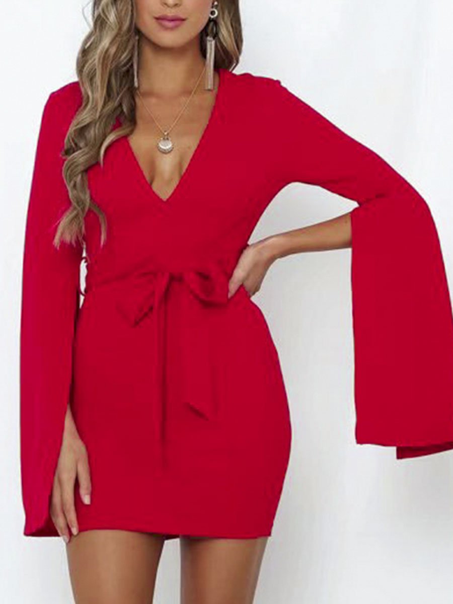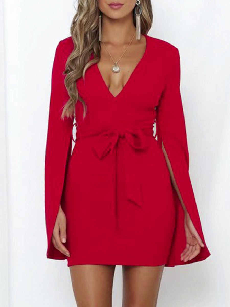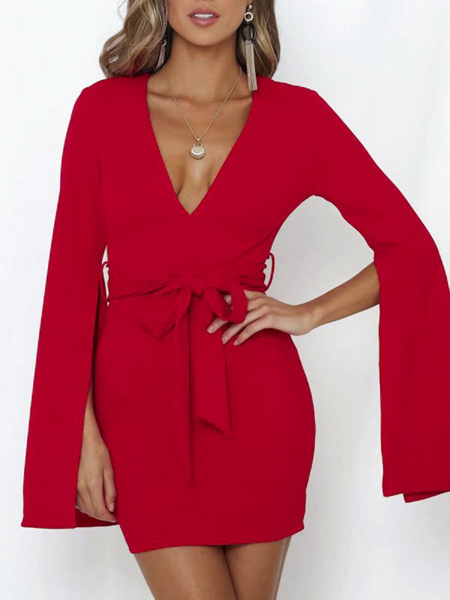 Bodycon Slit Sleeve Dresses - Red