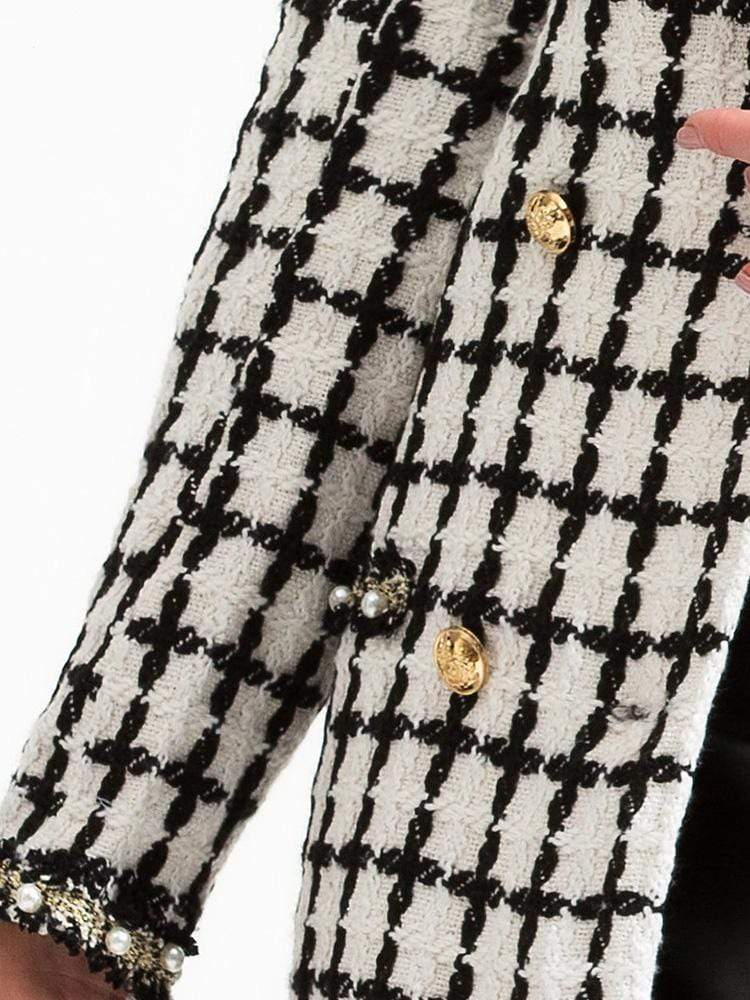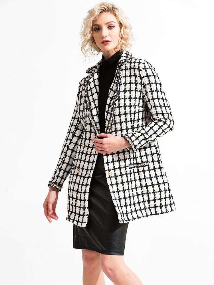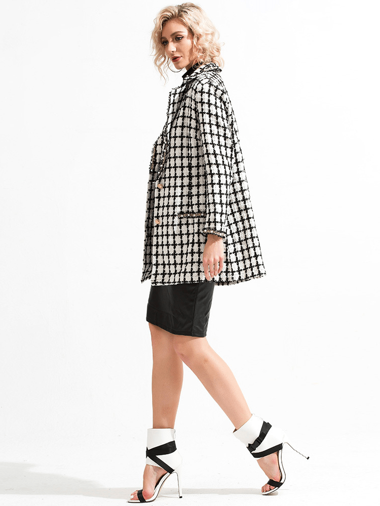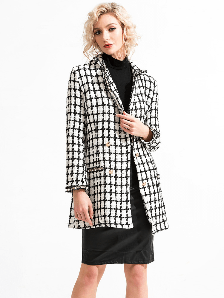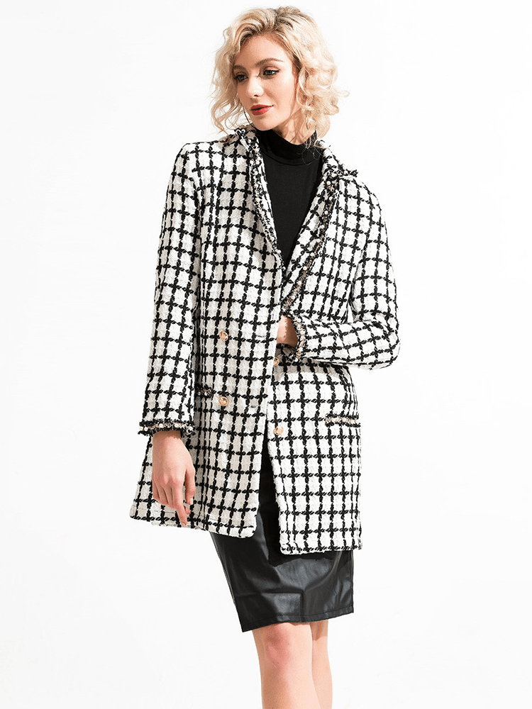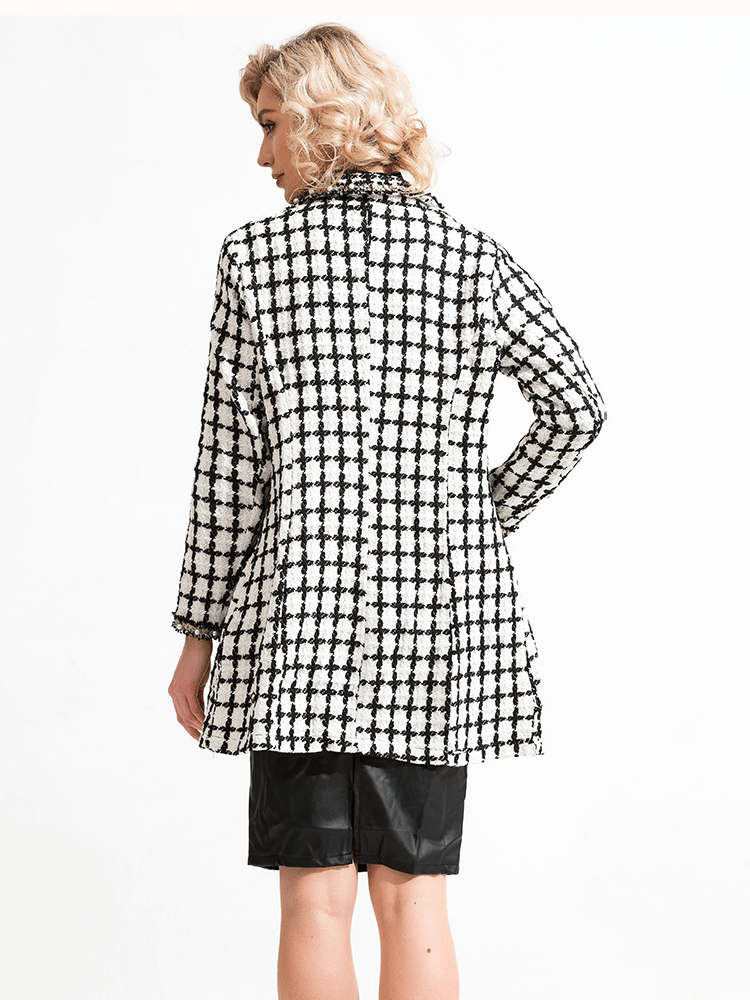 Fashion Checkered Slim Fit Suit Midi Office Coat