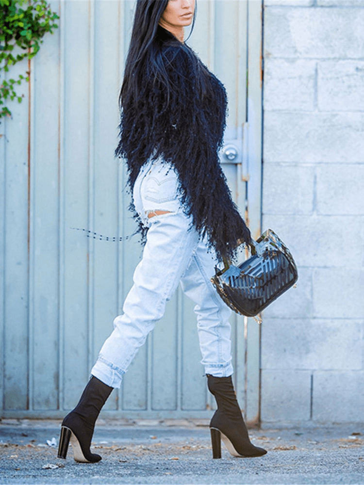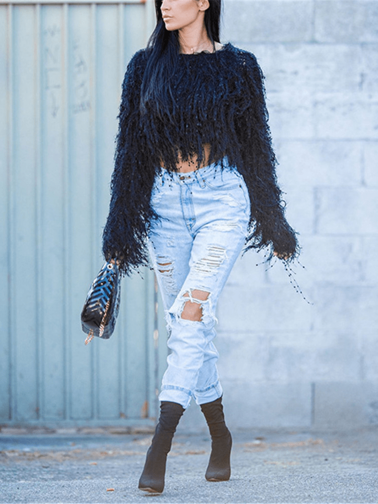 Fashion Long Hair Tassels Navel Exposed Sweater
