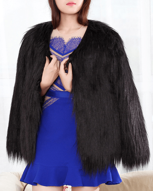 Fox Fur Long Hair Faux Leather Super Thick Warm Coat