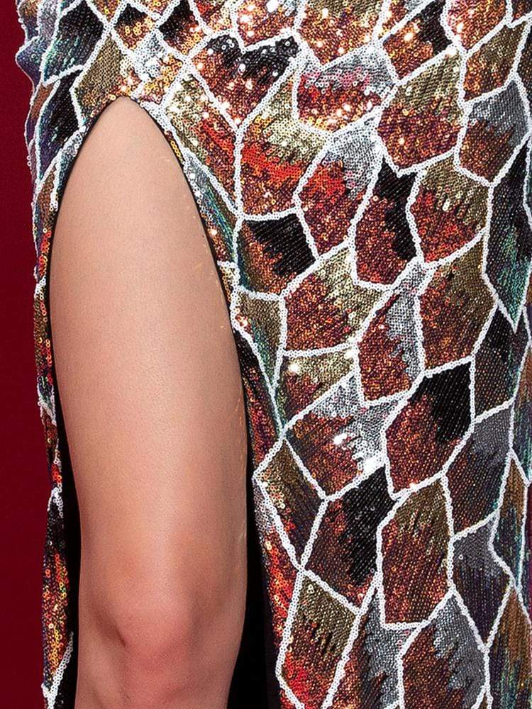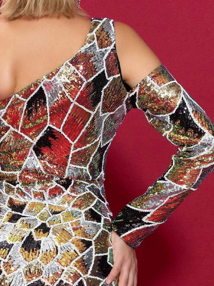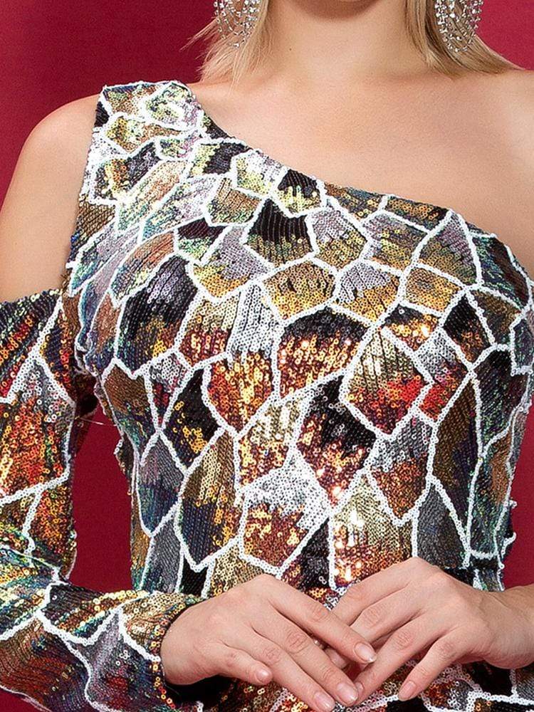 Gorgeous Colorful Sequined One-Sleeve Evening Gown