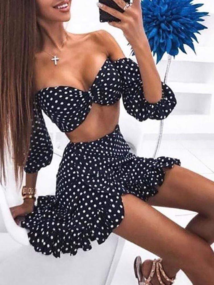 Off Shoulder Top Dot Short Skirt Two-Piece Set