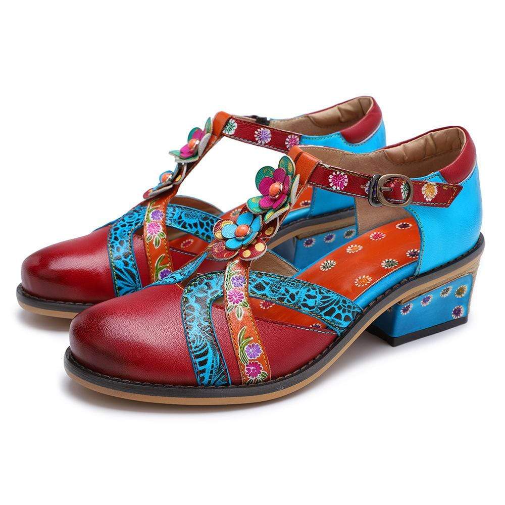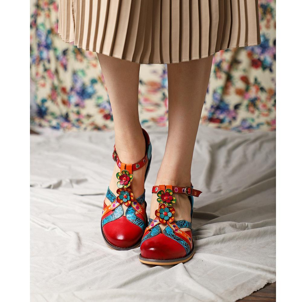 Popular Elements: Sewing Thread, Leather Stitching, Flowers, Thick Heel