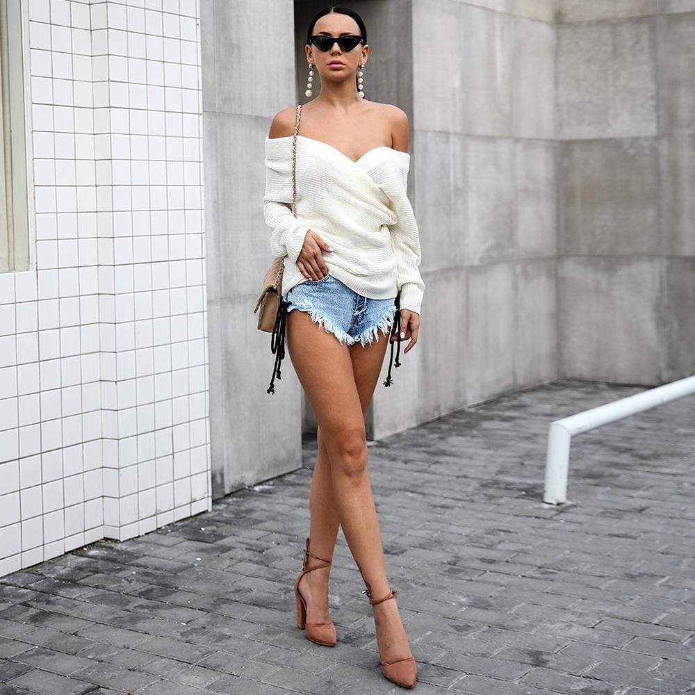 Sexy Off-Shoulder Pleated Loose White Knit Sweater