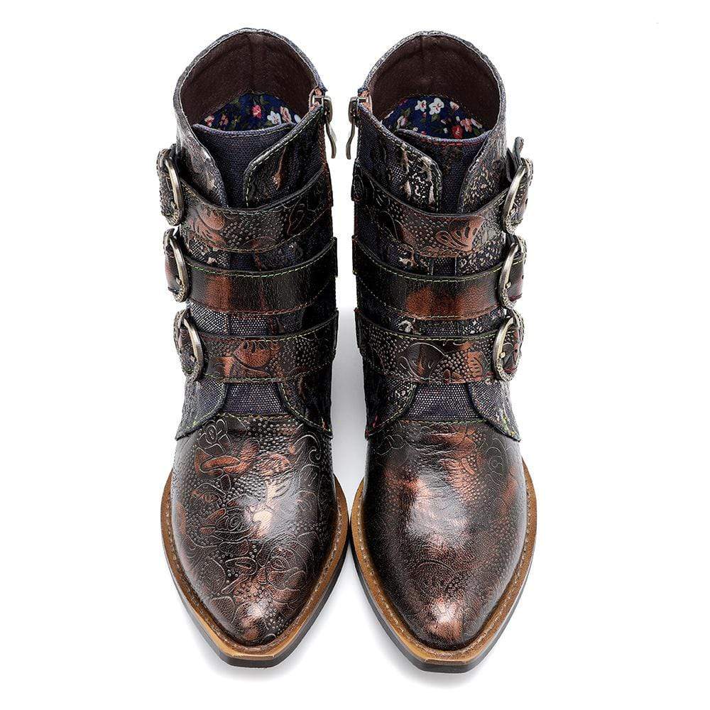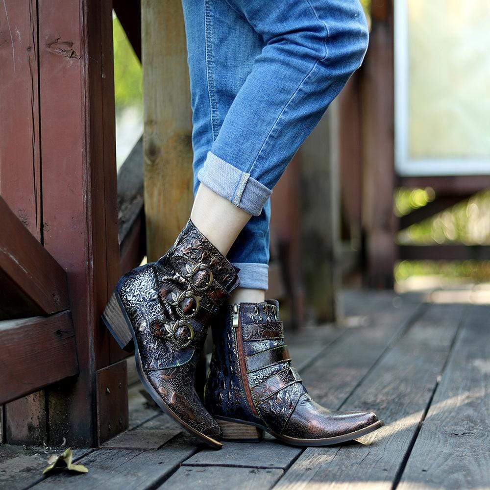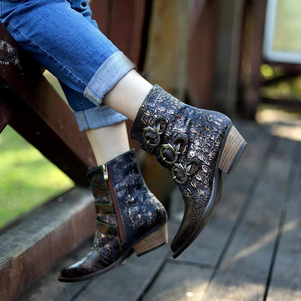 Snake Print Leather Boots Retro High-Grade Cowboy Boots
